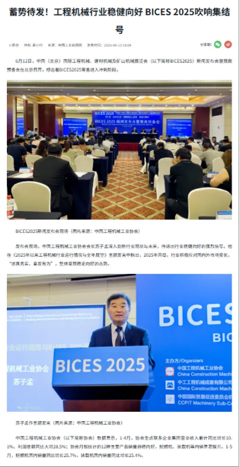 中國(guó)工業(yè)報(bào):《蓄勢(shì)待發(fā)!工程機(jī)械行業(yè)穩(wěn)健向好BICES 2025吹響集結(jié)號(hào)》